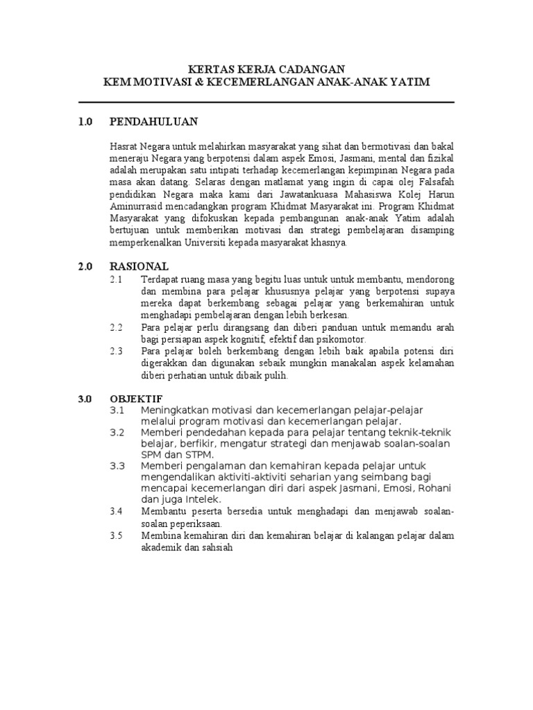 Kertas Kerja Cadangan Ke Rumah Anak Yatim Pdf